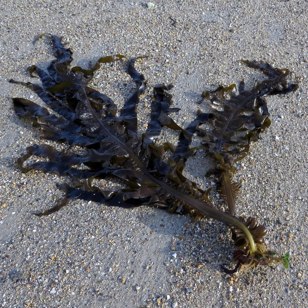 Der Tang hat ein breites, flaches „Blatt“ (Thallus) mit eingekerbtem, welligem Rand, manchmal teilen sich die Seiten des Thallus in fingerähnliche, nicht allzu lange Bänder. Der dunkelbraune, knorpelige Wakame-Tang kann bis zu 3 Meter hoch werden und besitzt ein klauenartiges Haftorgan (Rhizoid) mit dem er sich zwischen Steinen und Felsen „verankert“. Das Rhizoid mündet in einen kräftigen, abgeflachten Stiel (Cauloid), der direkt über dem Haftorgan einen unverwechselbaren, wellenförmig gewundenen, geriffelten, breiten Saum hat, das Cauloid geht in den eigentlichen Thallus über, setzt sich in ihm aber als deutliche, 1 – 3 cm breite, Mittelrippe fort.