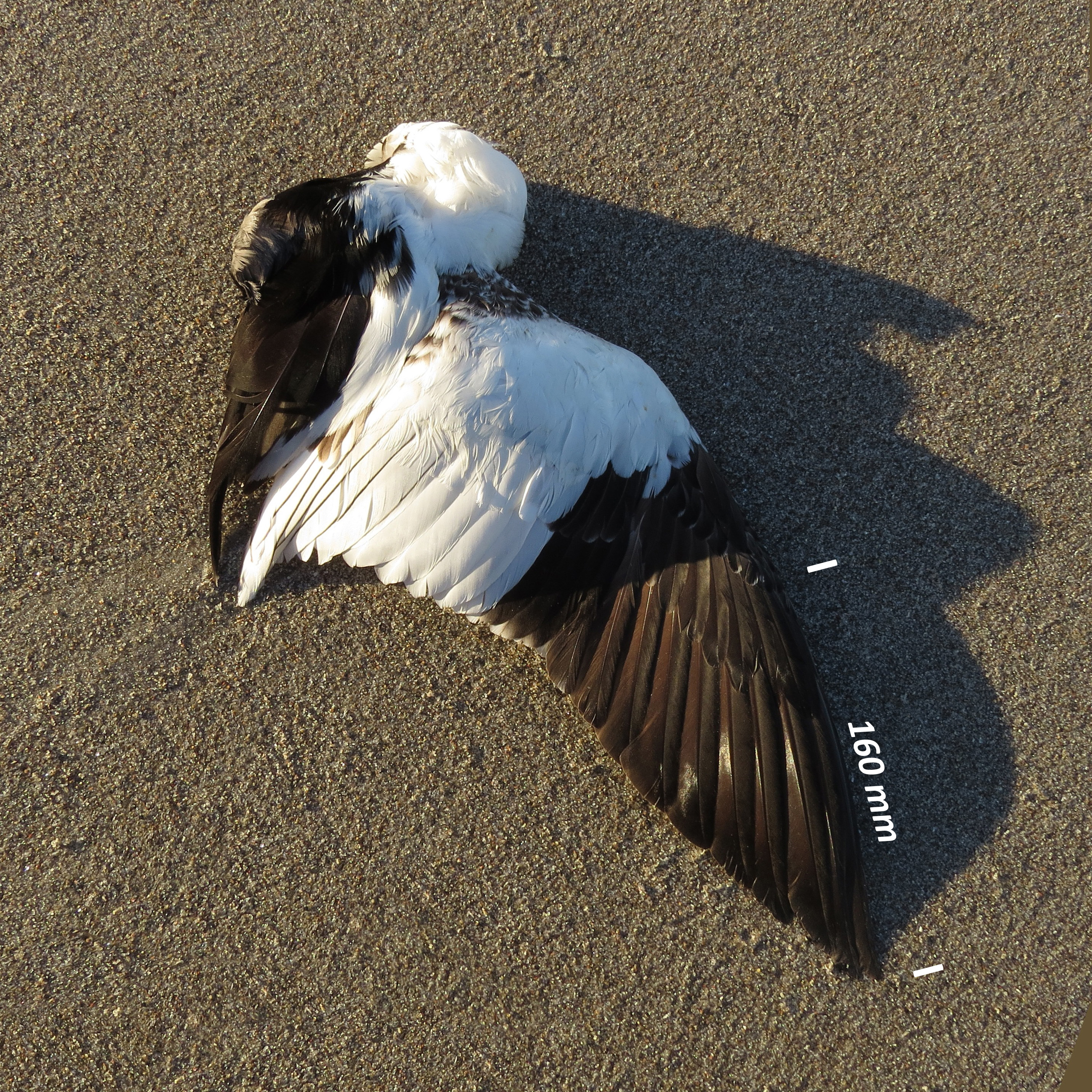 | Kort beskrivelse | Large saw-bill diving bird, white with black |