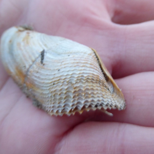 DE: Krause Bohrmuschel EN: Oval piddock DK: Stor boremusling