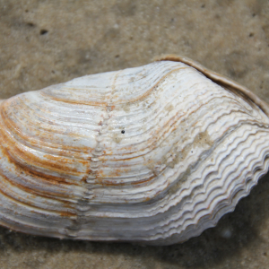 DE: Krause Bohrmuschel EN: Oval piddock DK: Stor boremusling